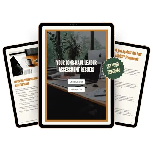 The Long-Haul Leader Assessment helps you assess how well your current lifestyle and work align with the four core pillars of the LifeOS™ framework, so you can lead with more clarity, purpose, and sustainability.